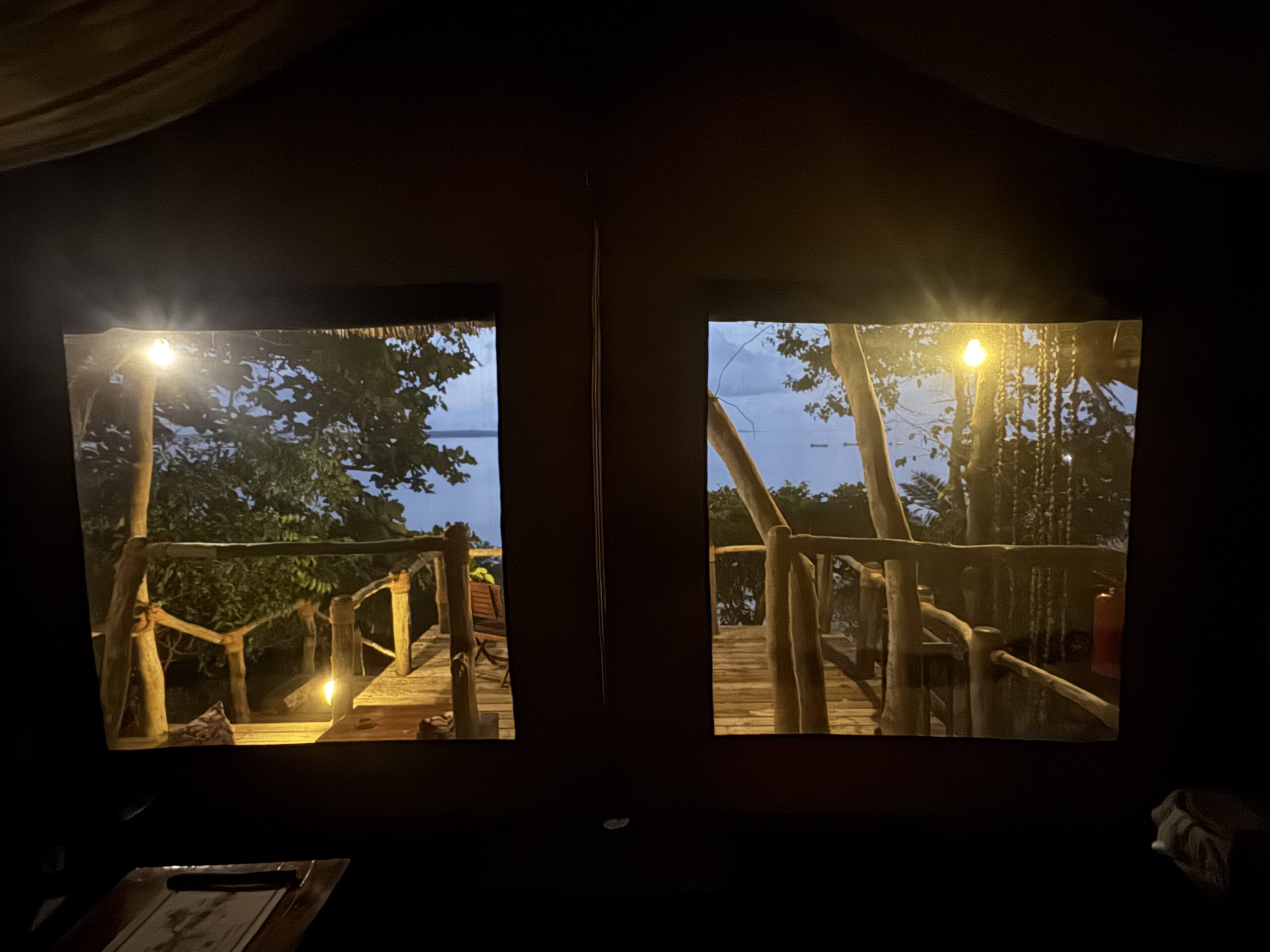 After dinner, we slowly made our way back to our tent. Even that short walk felt like an adventure. Using our phones as flashlights, we tried to spot where all the mysterious jungle sounds were coming from as we followed the sandy path. The night felt warm, alive, almost magical.