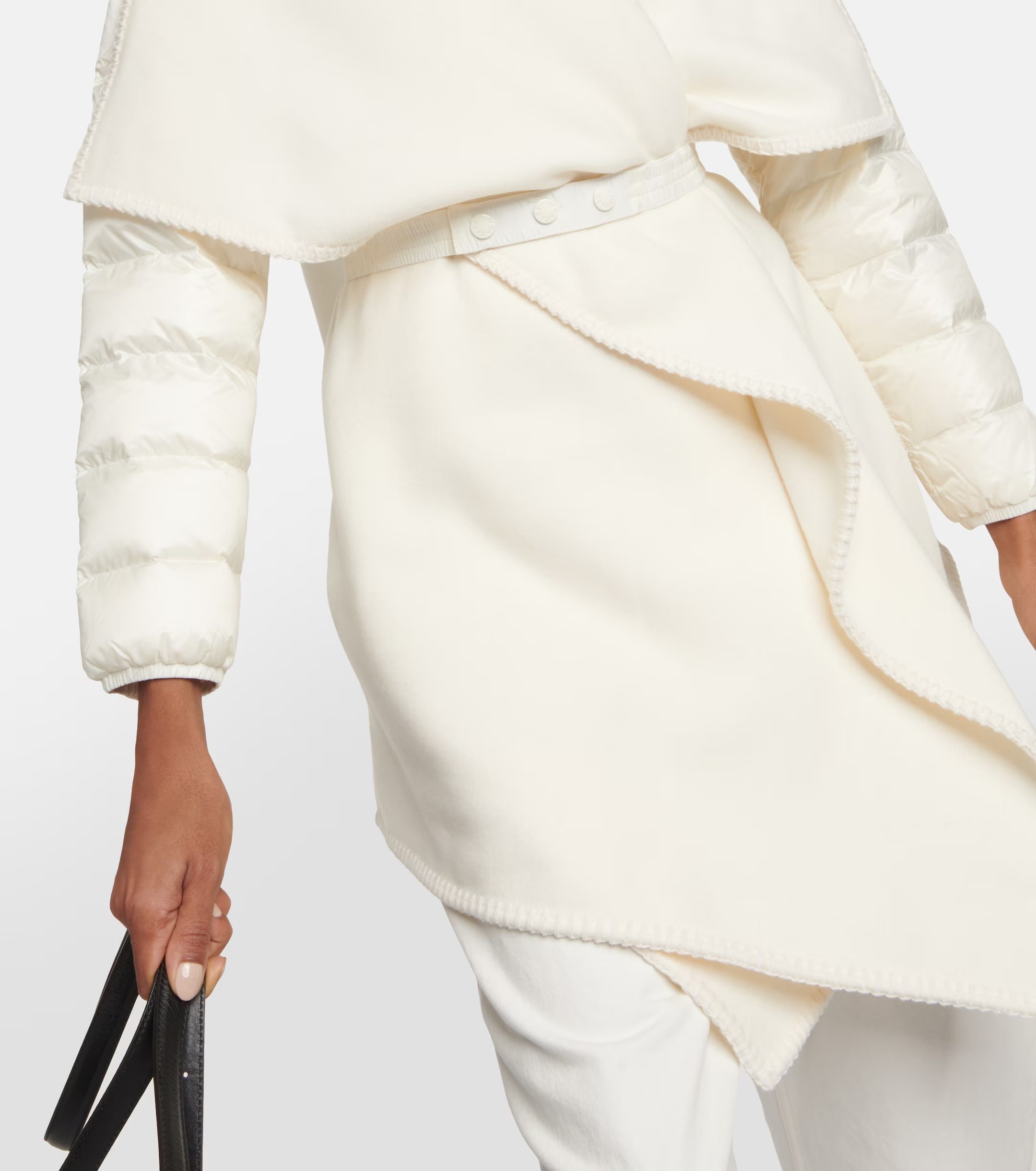 This Moncler cape is a sophisticated outerwear piece, pairing cozy wool with down insulation. An ideal addition to a refined wardrobe, this style can be worn independently or layered over lighter knits.