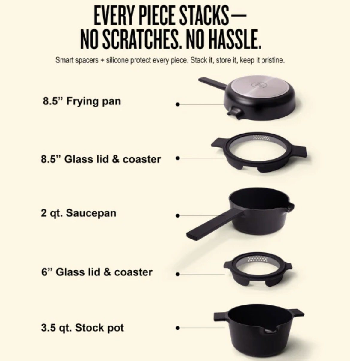 ✔ Thoughtful details: Cool-touch silicone handles, glass lids that double as coasters and strainers, and durable materials designed for daily use.
